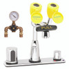 Speakman Eyesaver combination eyewashes and laboratory faucets are a revolutionary exclusive Speakman product with a unique design that combines a fully functional gooseneck faucet with an independently operated eyewash. This patented design incorporates two separate water channels in the faucet body, one for the eyewash and the other for the faucet. A simple pull activates the emergency eye wash and delivers a safe water temperature to the eyes each and every time. The faucet always remains functional. The Speakman Eyesaver SEF-1814-TW Batt. Op. Sensor Eyewash Faucet with Above Counter Mixing Valve and Eyewash TMV is a battery powered chrome-plated gooseneck sensor faucet with 8 In. deck plate and integral eyewash featuring two aerated spray outlets. The SEF-1814-TW includes an above counter faucet mixing valve and SE-370 thermostatic mixing valve for the eyewash. The SEF-1814-TW is compliant to the ANSI/ISEA Z358.1 standard.